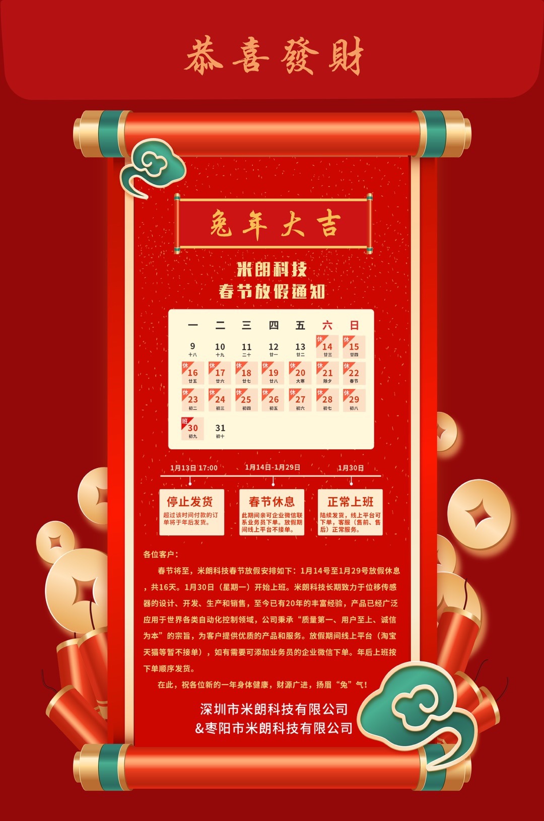 來(lái)源:MIRAN深圳市米朗科技有限公司2023年春節(jié)放假通知 發(fā)布于:2023-1-13 15:29:51 瀏覽:5044
