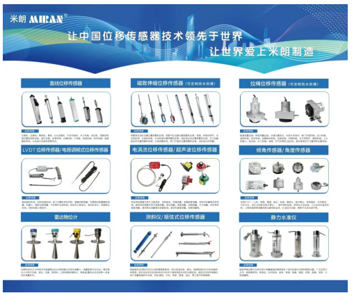 米朗科技這次展出的產品有:“MIRAN米朗、LinecSKI萊茵”系列電子尺/位移傳感器、磁致伸縮位移/液位傳感器、拉繩/線式位移傳感器、LVDT差動變壓位移傳感器、電渦流位移傳感器、磁柵尺、傾角傳感器、角度傳感器、超聲波位移傳感器、測斜儀及測斜管、壓力傳感器、裂縫計、振弦式位移傳感器、配套顯示控制器、靜力水準儀、雷達物位計、輪輻式稱重傳感器等,集中潤滑油泵及相關油路配件等產品。