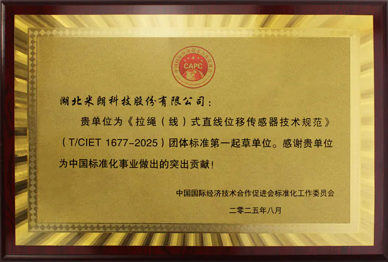 來源:米朗科技MIRAN--直線/拉繩式位移傳感器標準起草單位榮譽證書2025年 發(fā)布于:2025-10-21 16:18:14 瀏覽:265
