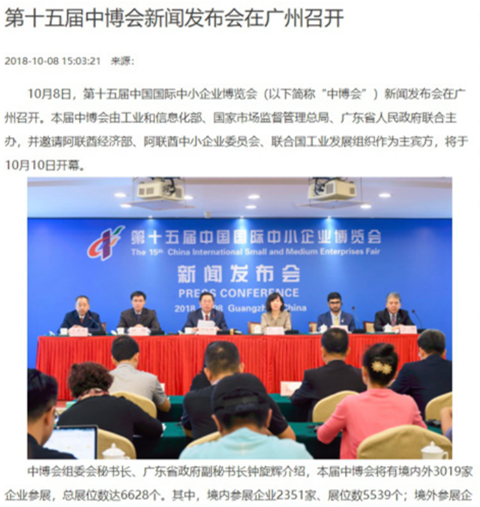 中國國際中小企業(yè)博覽會(簡稱中博會)是在中共中央政治局常委、全國人大常委會委員長、時任廣東省委書記張德江的倡導下,經(jīng)中國國務院批準,于2004年創(chuàng)辦的。中博會由中國工業(yè)和信息化部、國家市場監(jiān)督管理總局、廣東省人民政府等部門主辦,每年秋季在廣東省廣州市舉辦,至今已經(jīng)成功舉辦十四屆,是國際展覽聯(lián)盟(UFI)認證的國際展會。