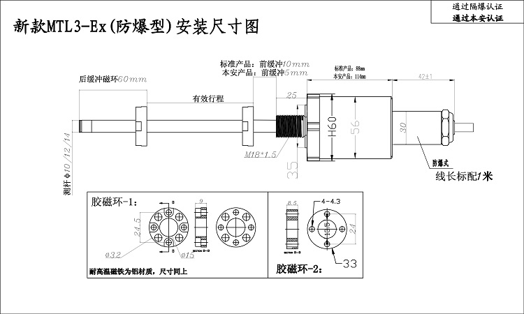 四、MTL3防爆式磁致伸縮位移傳感器安裝尺寸圖: