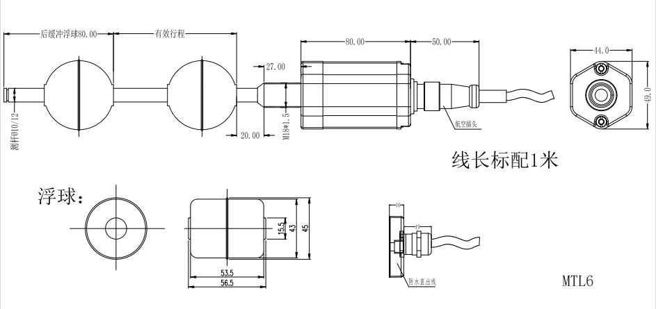 四、MTL5(MTL6)磁致伸縮位移/液位傳感器安裝尺寸圖