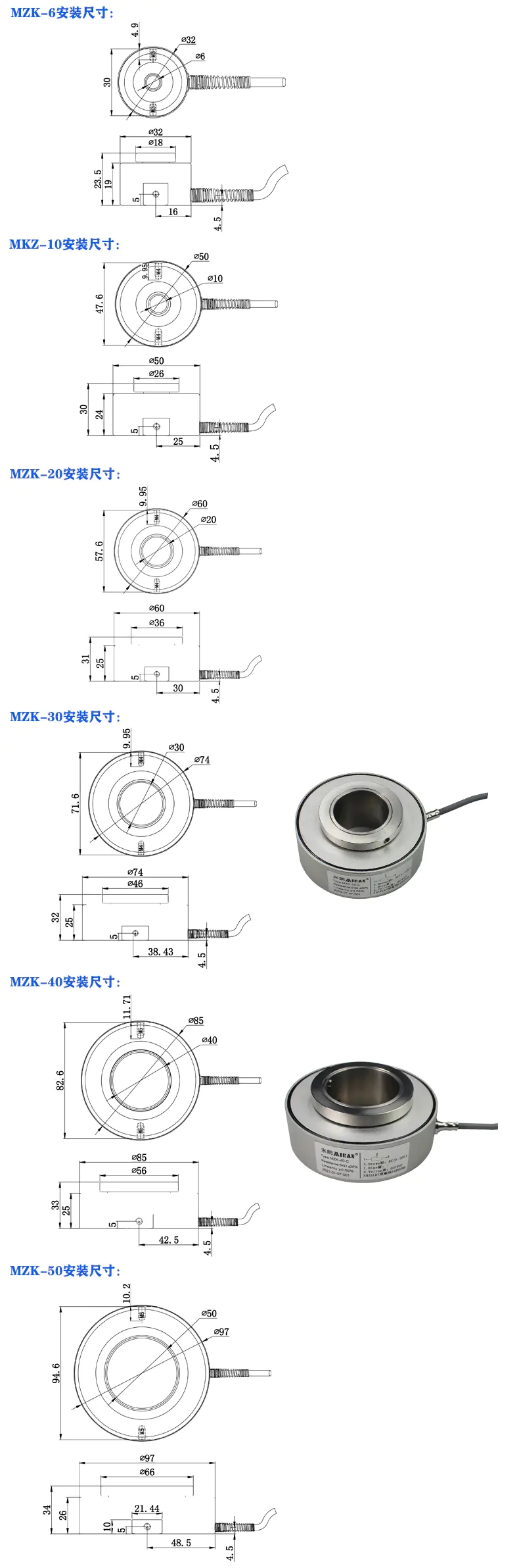 MZK-(6mm-50mm)中空軸角度傳感器技術(shù)參數(shù):