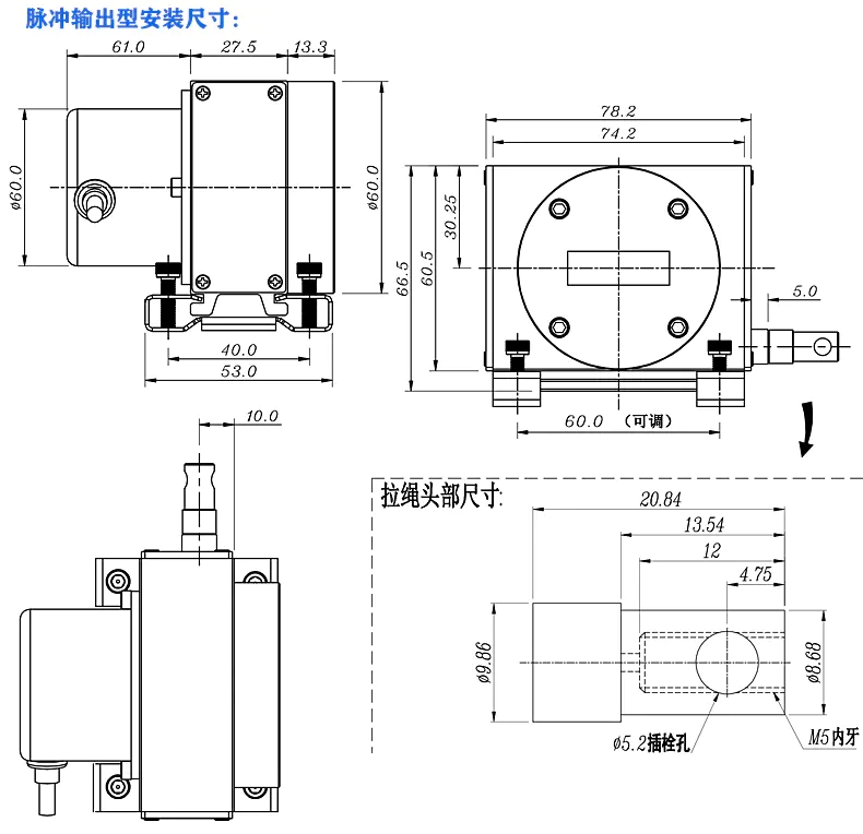 四、LPS-S拉線式位移傳感器安裝尺寸: