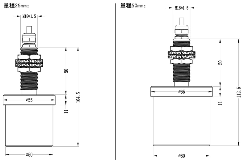 ML33Y一體式電渦流傳感器安裝尺寸: