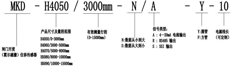四、閘門開度(霍爾磁柵)位移傳感器選型: