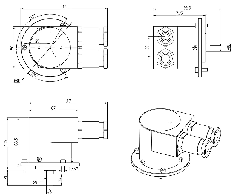 五、閘門開度(雙輸出磁感應(yīng))多圈編碼器安裝尺寸: