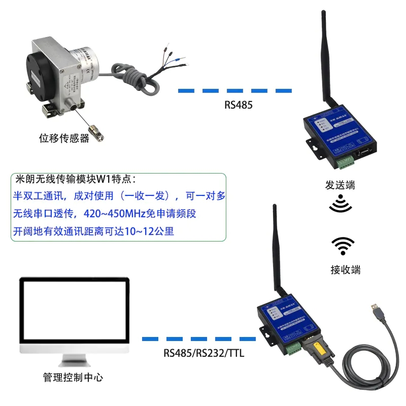 米朗傳感器無(wú)線傳輸模塊W1是一款高性能、低功耗、遠(yuǎn)距離的微功率射頻無(wú)線數(shù)據(jù)收發(fā)電臺(tái),內(nèi)部自動(dòng)擴(kuò)頻計(jì)算和前導(dǎo)CRC糾錯(cuò)處理,不改變用戶的任何數(shù)據(jù)和協(xié)議,采用半雙工透明傳輸機(jī)制,實(shí)現(xiàn)無(wú)線代替的功能。