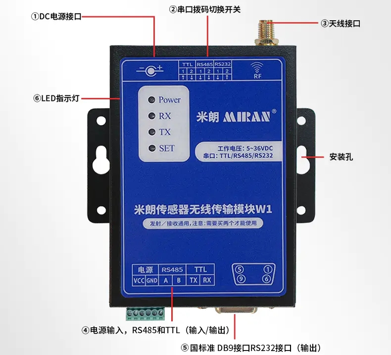 一、米朗傳感器無線傳輸模塊W1/無線數(shù)傳電臺(tái)概述: