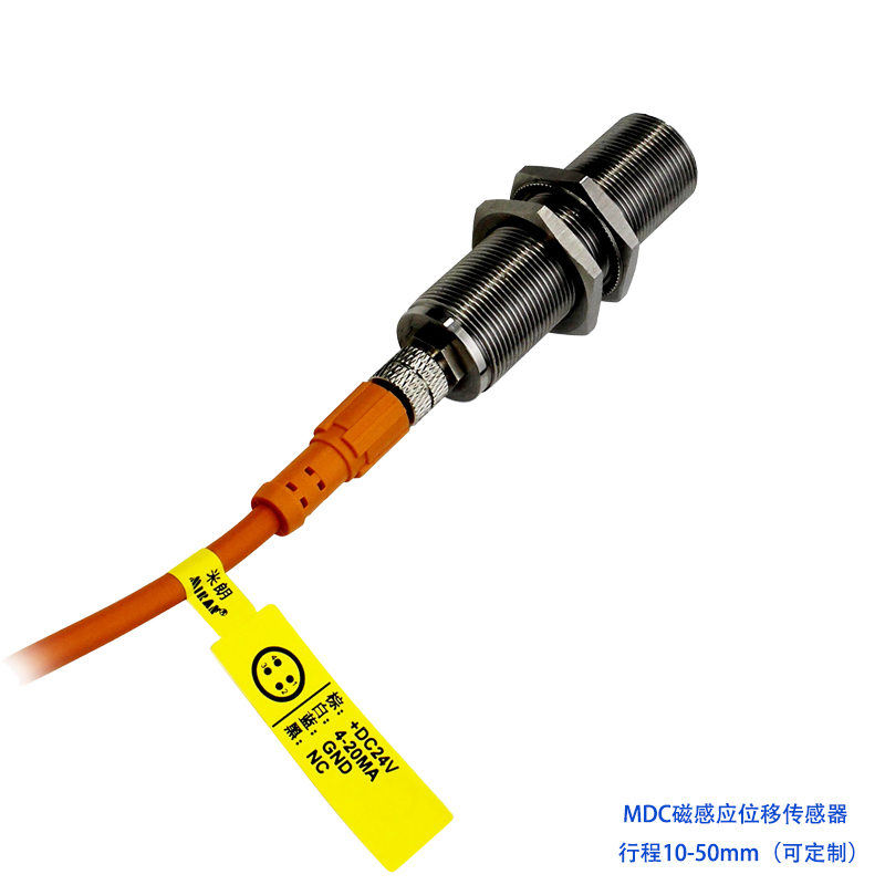 MDC系列磁感應(yīng)位移傳感器可用于非接觸式的位移和距離測量及軸和齒輪轉(zhuǎn)速測量等,其原理是將電感式傳感器與磁式傳感器的優(yōu)點(diǎn)相結(jié)合,以磁鐵作為檢測目標(biāo),固定在測量對(duì)象上,磁鐵的移動(dòng)會(huì)改變傳感器內(nèi)線圈的磁流變化,由于相互抵消的物理效應(yīng),線圈感應(yīng)的信號(hào)強(qiáng)弱與磁鐵的距離遠(yuǎn)近會(huì)產(chǎn)生線性關(guān)系。傳感器通過檢測被測物體上固定磁鐵的位移變化,即可輸出連續(xù)線性信號(hào)。也可通過改變使用不同強(qiáng)度的磁鐵,來改變傳感器的測量范圍。