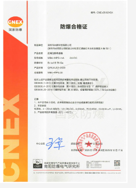 本安型拉繩/拉線位移傳感器證書(模擬量信號(hào)輸出)