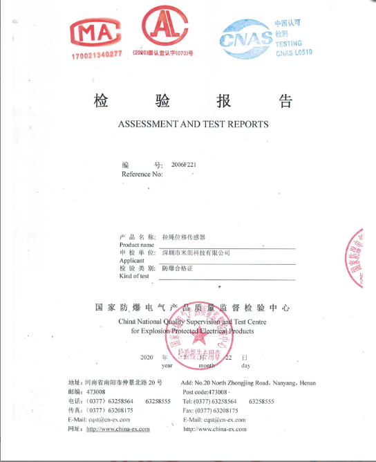 • 防水防爆型拉繩位移傳感器檢驗(yàn)報(bào)告