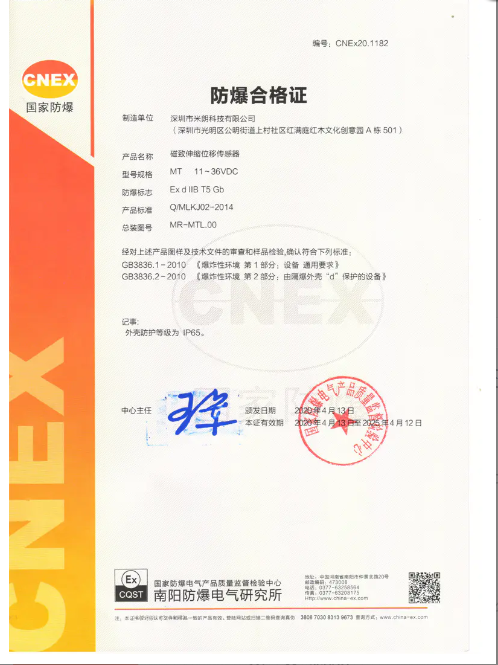 • 磁致伸縮位移傳感器防爆證書(shū)