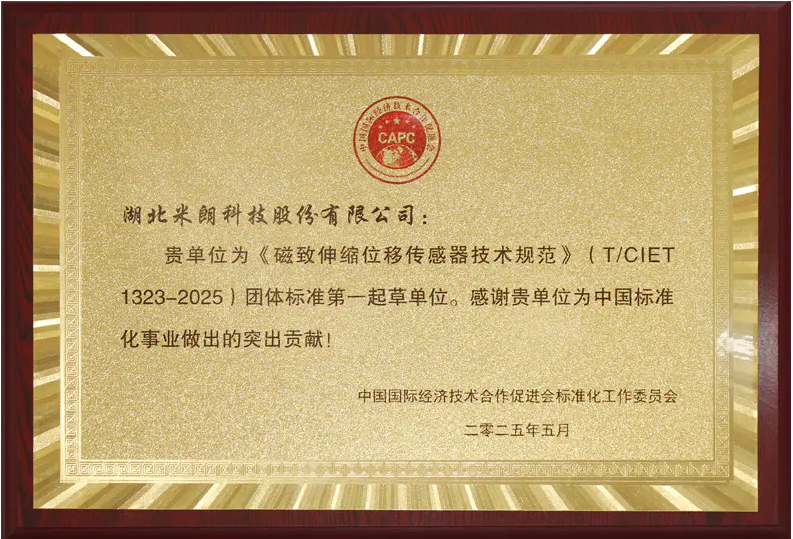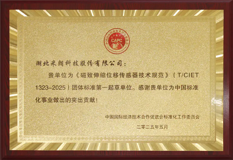 磁致伸縮位移傳感器標(biāo)準(zhǔn)起草證書(shū)