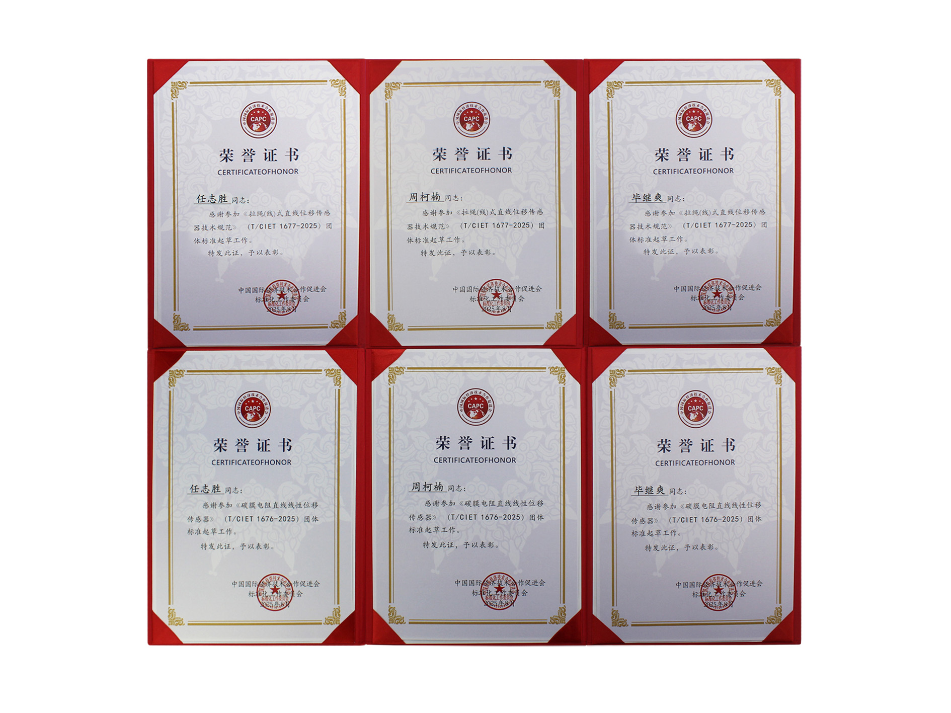 • 直線(拉繩)位移傳感器標(biāo)準(zhǔn)起草榮譽(yù)證書